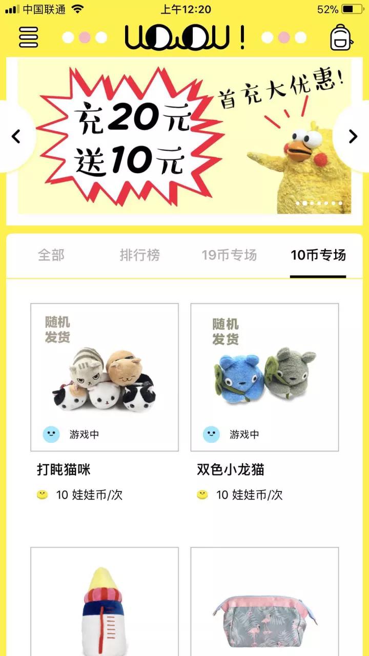 一些产品正在提升自己抓取娃娃的概率,用更高的成本增加获客概率和留存;也有产品降低了娃娃的抓取价格,提供了一元专区。当然,赠送免费次数、充值折扣更是最常见的竞争方式。