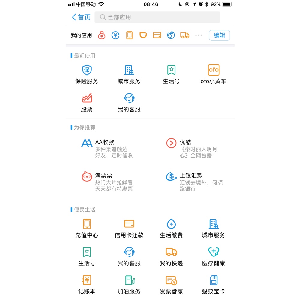 谈到支付宝的应用中心,相信大家都不会陌生。它的特性和小程序非常相似,体积极小,其服务不会随 App 一起被用户下载,只有在用户需要,并点击它时才会即时下载。可以说是早期的「小程序」了。