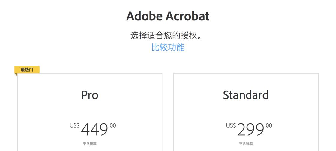 Adobe Acrobat 买断制的定价