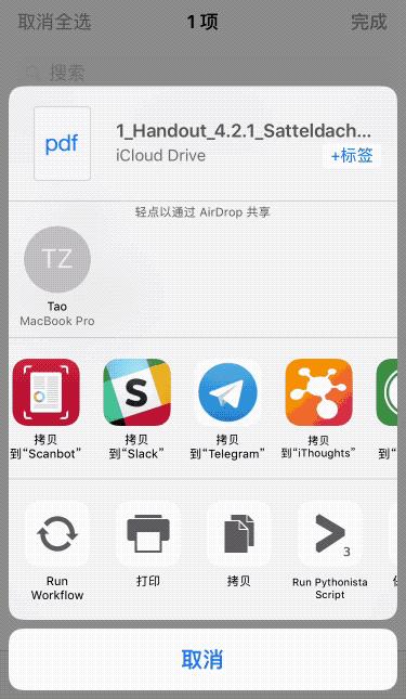 由于不是 PDF 阅读器,Scanbot 还真没有一个从应用内打开 PDF 的方法,需要从外部,例如「文件」应用中,利用「分享」列表导入。