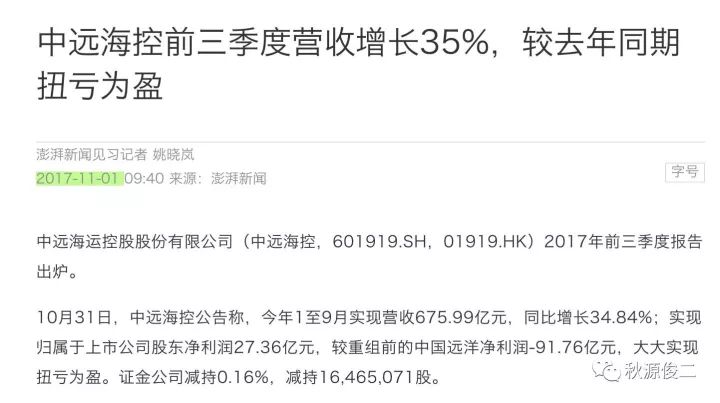 (以前读资料的时候,有一个人讲述过自己选“中国远洋”这只十倍股经历。所以对这个航运行业,特别有印象)