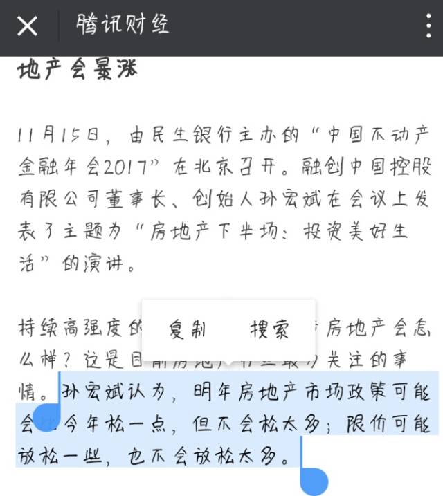 但是这个传导,有个时间成本,就是财务报表本身是滞后指标。除此之外,孙宏斌昨天在腾讯财经,也有类似的言论,说资金很紧张,如下截图: