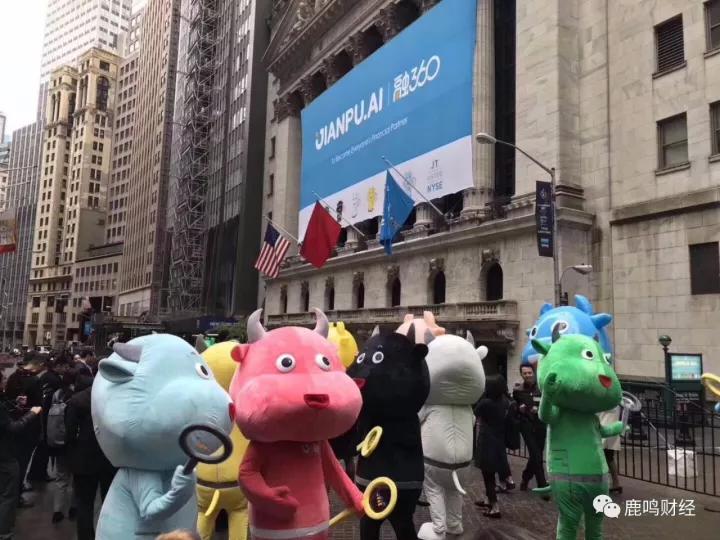 一大早,融360CEO叶大清就起床,很激动地来到位于华尔街的纽交所门前拍照留念。在纽交所门前,挂上了3面旗帜,分别是美国国旗、中国国旗和融360的旗帜,3面旗帜的上方,更大的一张融360旗帜被悬挂在纽交所的柱子上,与以往不同的是,融360还把7个吉祥物“融七牛”带到了现场,不同的颜色格外耀眼。现场不停传出“咔擦”声,相机和手机的快门声交织在一起。