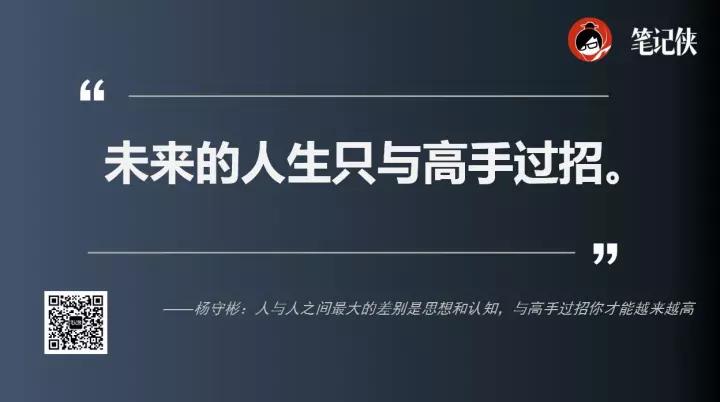 这也是为什么我在“杨十条”其中一条是:未来的人生只与高手过招。