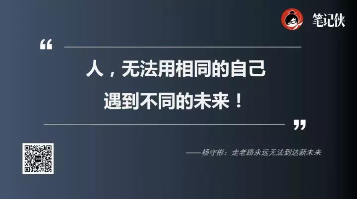 今年我最大的启发是:“人,无法用相同的自己遇到不同的未来!如果行为没有任何区别,未来的人生,走老路永远无法到达新未来”。