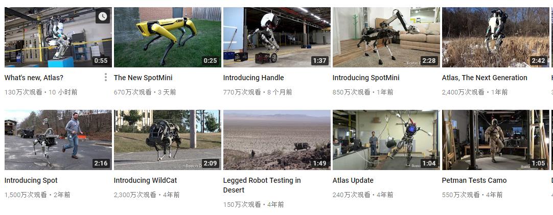 每次机器人有「新技能」的时候,波士顿动力都会上传一段视频,各种机器人的展示视频在海外的视频网站上拿到了百万甚至千万的点击率。