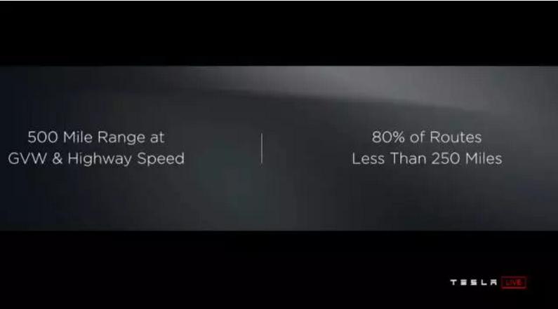 马斯克介绍,从里程数来看,可以走得更远。在高速上,以最大载重量行驶的话,可以走500英里。而正常的柴油车80%都是少于250英里的。