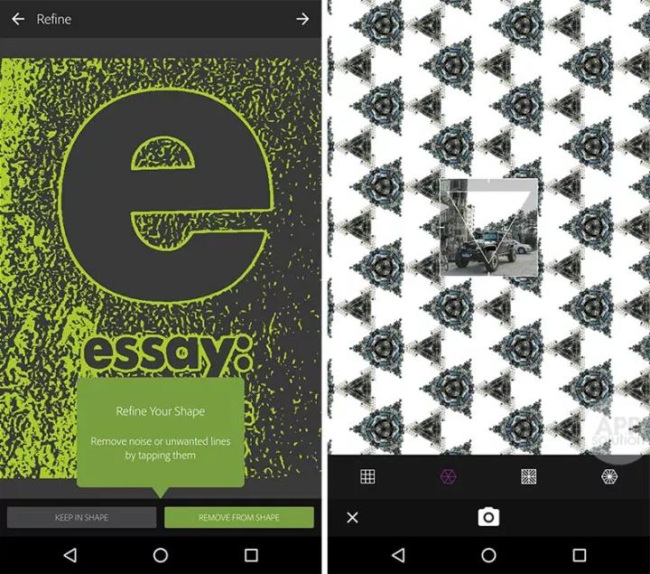 Patterns 纹理与图样:把照片变成酷炫的纹理?可以,这很 Adobe。例如图中的青素的三角花纹,却是由一辆越野车的照片转化而来的。
