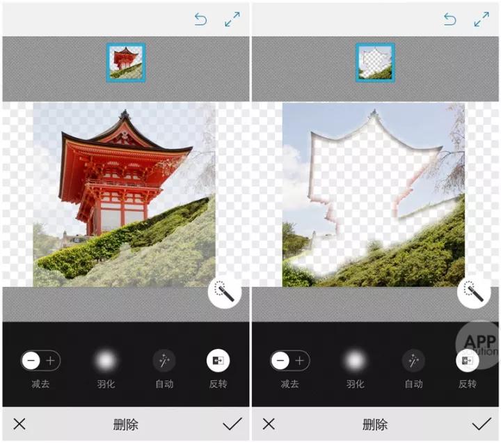 去瑕:类似于 Photoshop 中的仿制图章功能,但在移动端的识别作用有限。