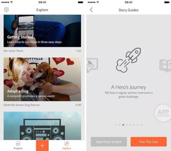 Adobe 公司的移动辅助陈述工具 Adobe Spark Video(曾用名 Adobe Voice),做的就是拔高「会讲故事」标准的事。