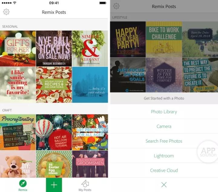 Adobe Spark Post 适用于 iOS 8.0+ 的 iPhone,大小 82.7 MB,完全免费,需登录美区 App Store 下载。