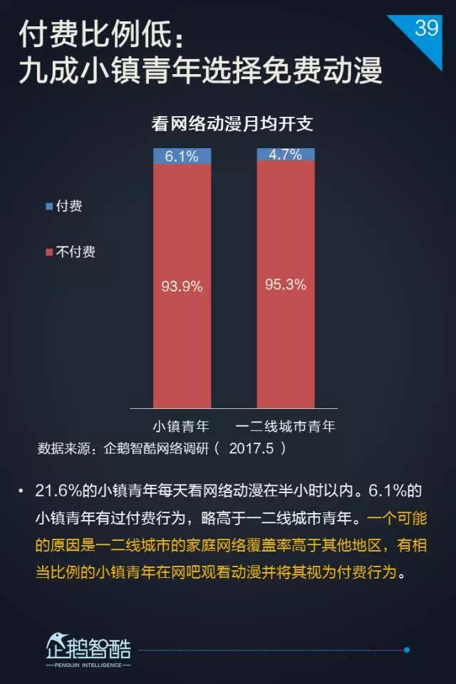 企鹅智酷通过网络调研,对比和总结了三线及以下城市年轻用户(小镇青年)在泛娱乐六大细分领域的特征和画像。他们与一二线城市年轻人的相同和不同,都将会是泛娱乐商业向新市场布局的重要参考。