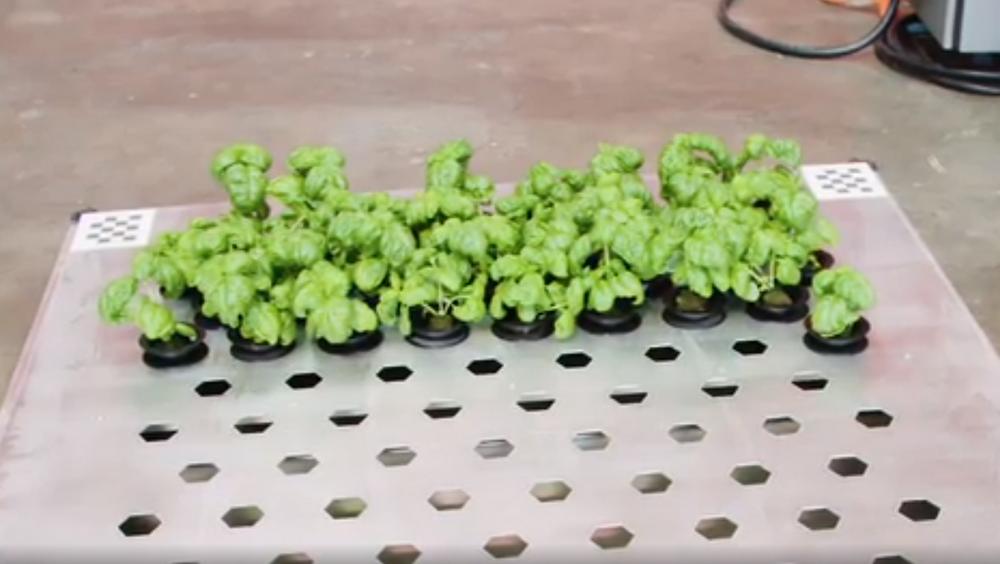 为了把种植效率搞上去,Iron OX并没有在温室里部署拖拉机,而是先创建出一个装满营养液的定制水培托盘。托盘被分成不同的网格,农作物就在小孔中生长。