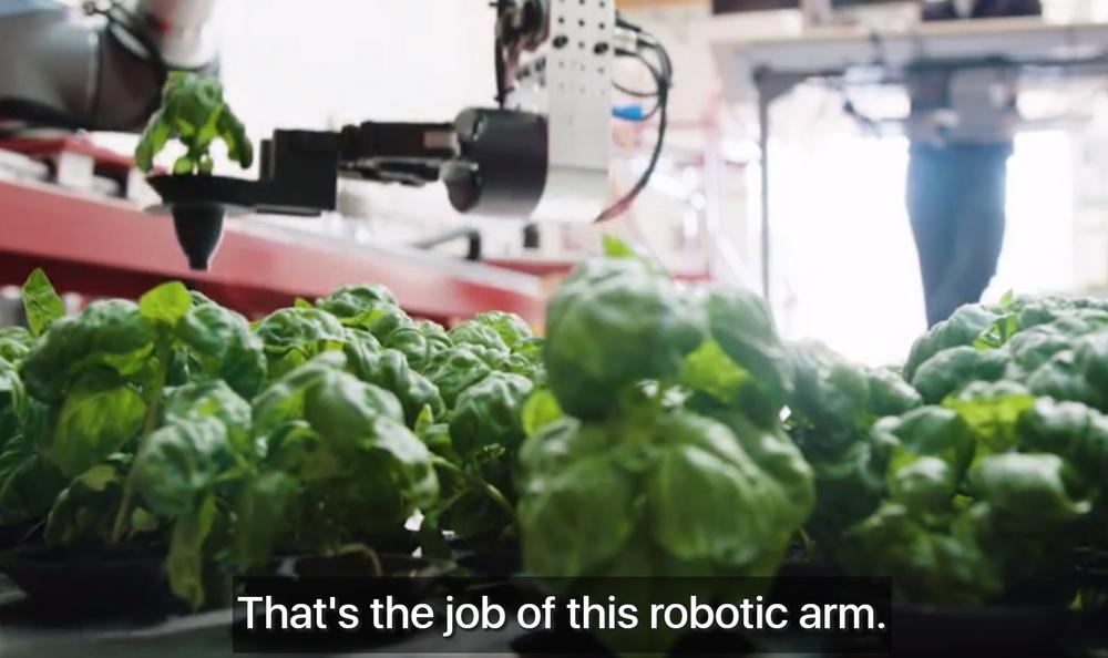 所以稍微总结一下的话,Iron OX智能温室系统能够通过数据收集与机器算法来自动种植和管理农作物,比人力更精准、更高效,而且还比传统农场占用的空间小、消耗的资源少。Iron OX公司表示,与户外农业相比,他们的水培系统的用水量能减少90%。