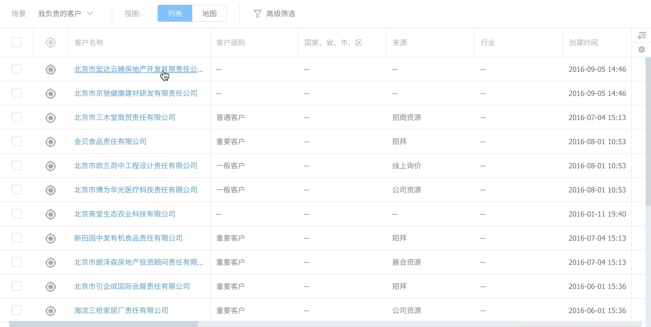 后台也可以切换视图使用户用更习惯的方式,展示列表内容。切换视图有许多表现方式来表现,如列表、地图、剖面图、折线图、扇型图…