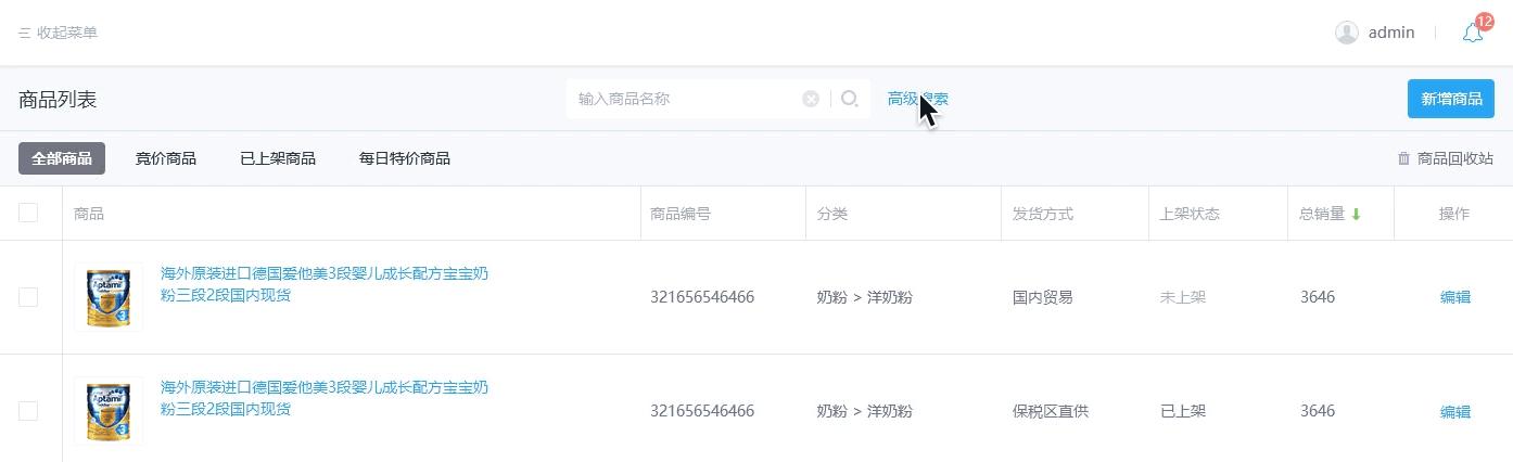 当搜索条件超过一定数量,我们可以将不是首要的的搜索条件隐藏,将头部宝贵的空间释放出来展示列表重要搜索内容。高级搜索和普通搜索的切换就很好的实现相应需求。