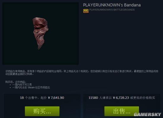 目前《绝地求生》红头巾在Steam上有18个正在出售中,最低价7641.9元,另有11580人求购中,最高求购价6728.23元,巨大的供求差导致了其一涨再涨的价格,相信破万也只是时间问题。