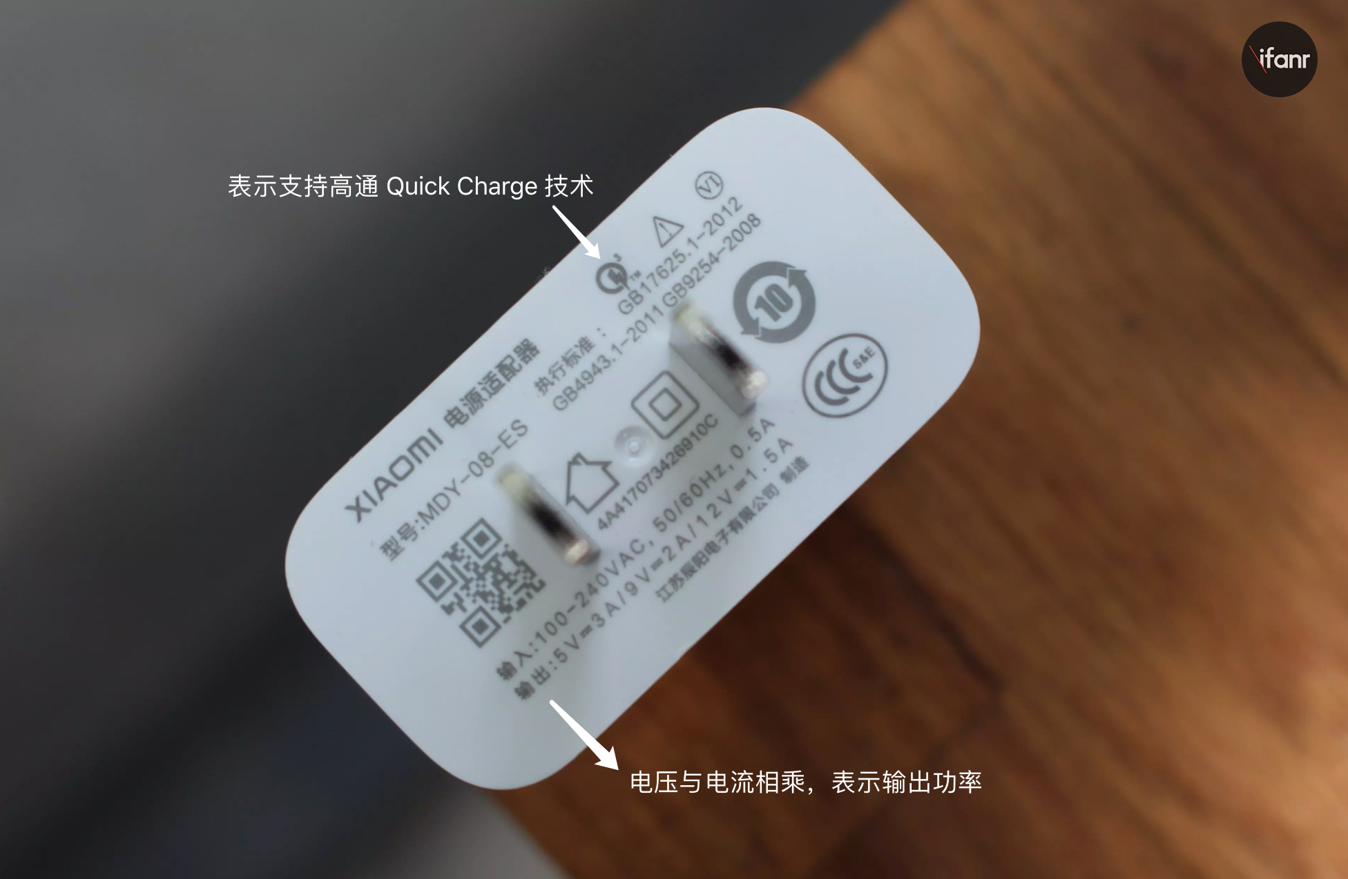 「圆圈闪电」标识表示支持高通 Quick Charge 技术,只要你的手机搭载了高通处理器,基本上都可以用这种充电头实现快充。
