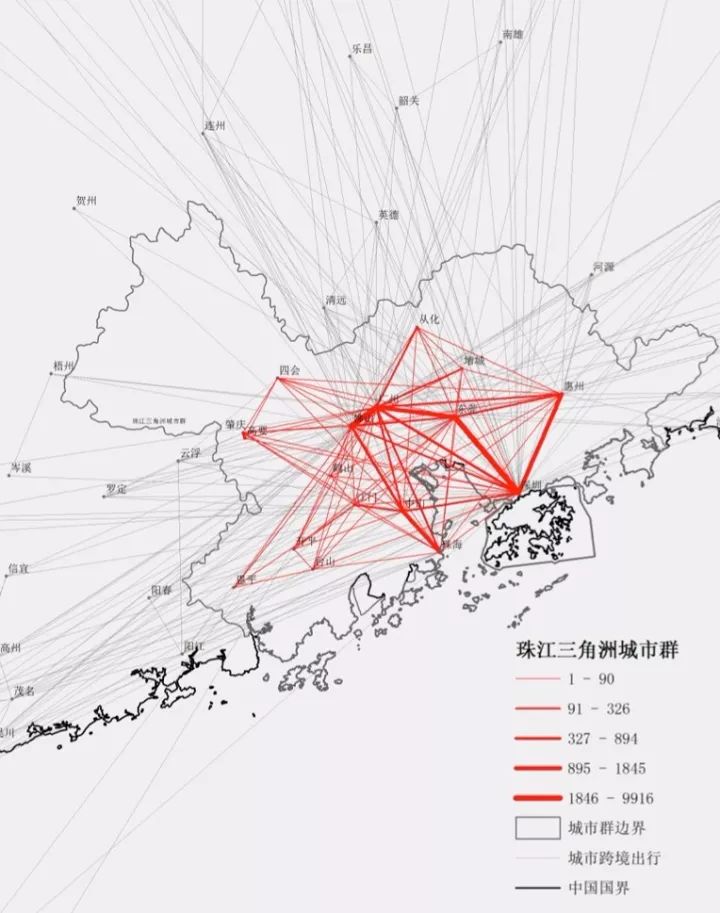 珠三角城市群跨城出行示意图。