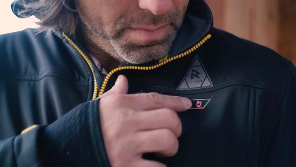 具体的操作是这样的,当你穿上这件智能夹克并打开控温模式之后,Kinesix的手机APP会自动识别并与衣服连接,向你显示户外的实际温度并推荐适合你当下活动的穿着温度。加热同样依靠电池组,最高能到40度,满电时高温可持续加热3小时。