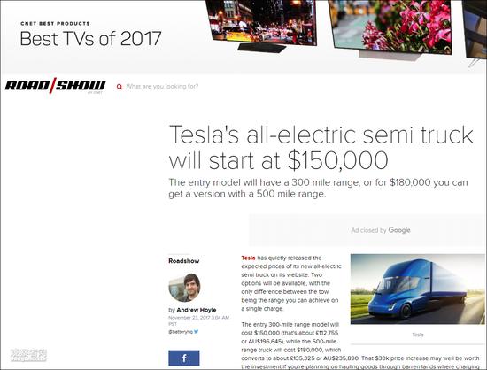 特斯拉电动卡车售价公布:100万元起