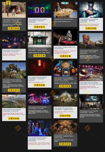 主题娱乐界每年有一个类似奥斯卡性质的行业大奖THEA,它每年提名的项目都代表着娱乐未来的新风向,2018年提名的18个项目中(下图图一为提名列表),12个和沉浸式体验有关。