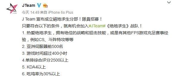 从招募要求来看,周董的眼光还真是不低。亚服排名前500的选手必定与各类高手神仙都有过交手,在这种分段还要求30%的吃鸡率更是有些严苛。