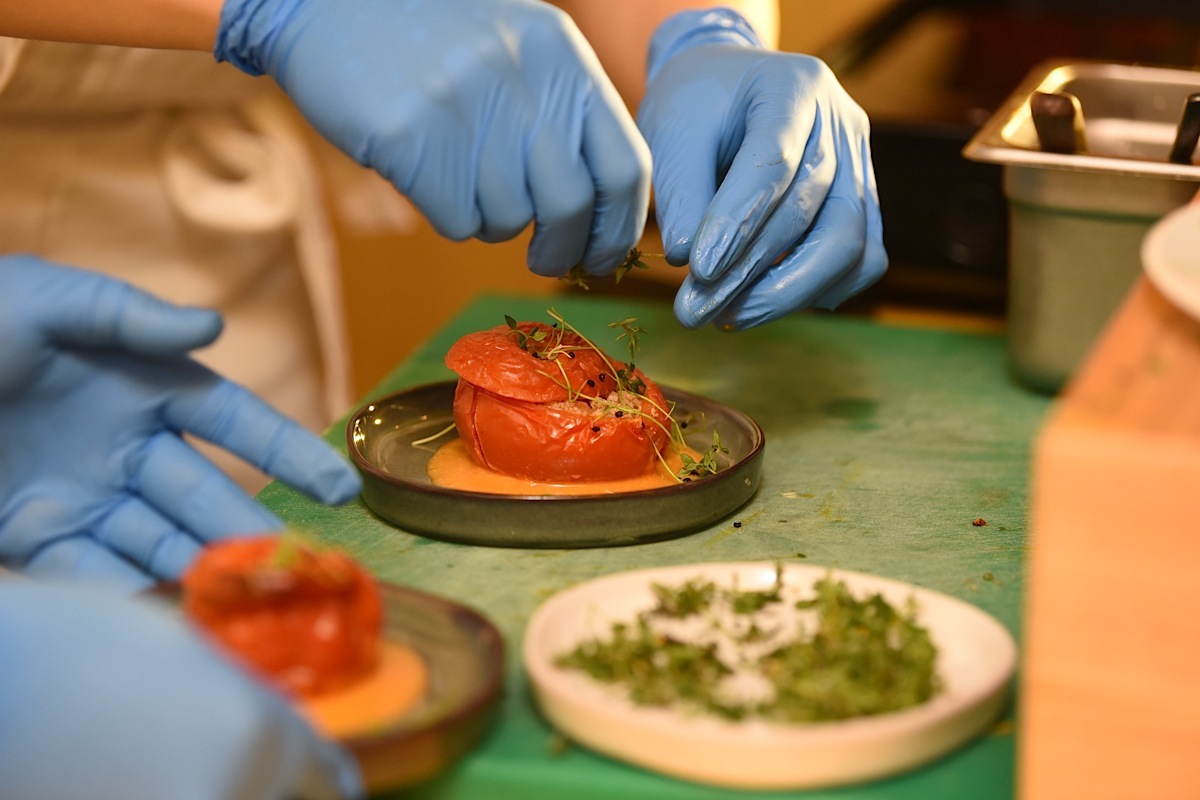 这些料理的食材其实也很常见,比如赤色能量,就是用番茄、纯牛肉和图根林香肠烹饪而成,口感饱满,肉质鲜嫩松软,肉汁和番茄的结合让呈现出酸甜的香味。