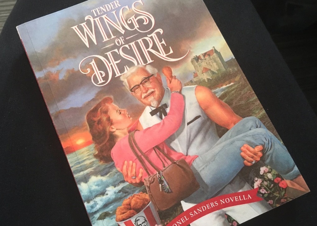 今年5月母亲节,肯德基出版了一本浪漫爱情小说来搞营销,书的名字叫《Tender Wings of Desire》,故事的男主角是品牌Logo上的老爷爷—山德士上校。