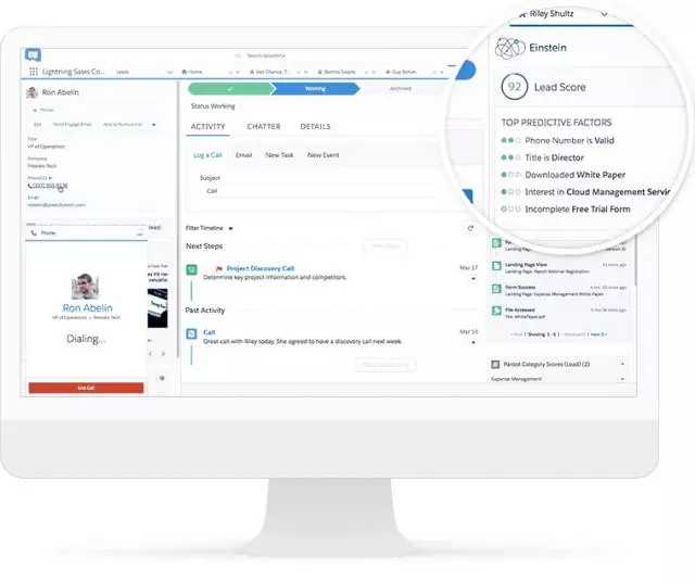 Salesforce Einstein 可以帮助使用 Salesforce CRM 软件的企业分析客户关系的方方面面 —— 从最初的联系到随后持续不断的接触点均可包含在内,借此构建更详细的客户画像,识别销售过程中的所有重要时刻。这意味着用户可以获得更全面的线索计分,提供更有效的客户服务(并改善客户满意度),抓住更多商机。