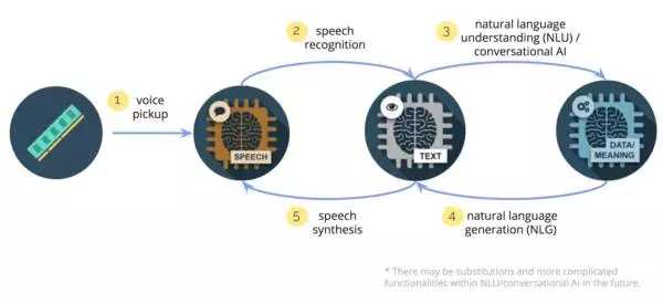 简化的五步示意图展示了自然语言处理系统的关键环节
