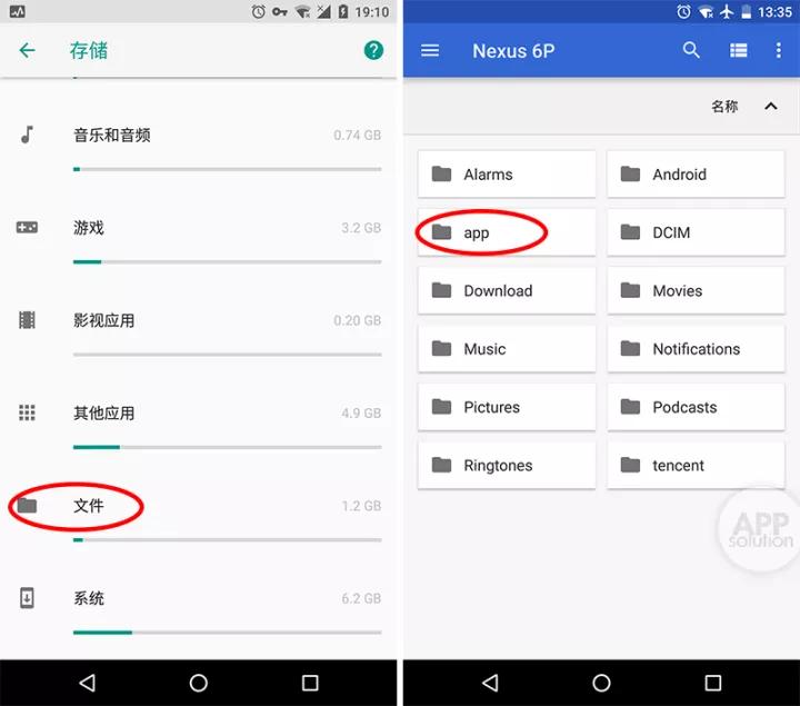 由于原生系统中没有「文件浏览器」等 App,在设备上读取 apk 文件稍微有点儿麻烦:以 Android 8.0 为例,依次点按「设置」-「储存」-「文件」,即可找到相应文件夹。