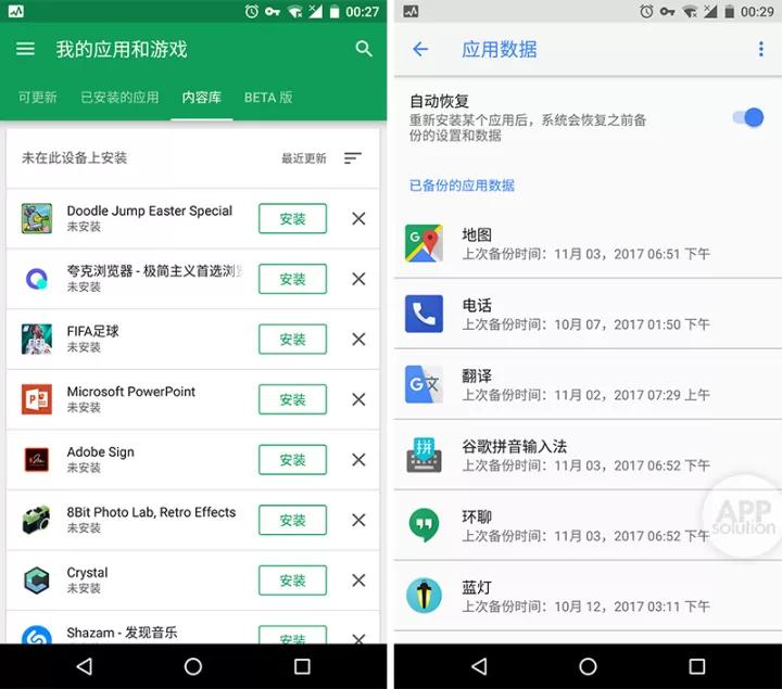 在重新安装某一个 App 时,你可以恢复之前备份到 Google 帐号中的应用设置。