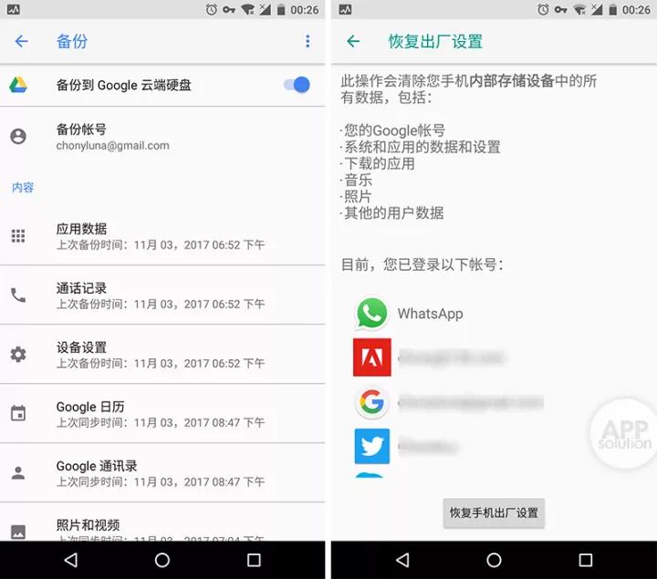 以备不时之需,原生系统用户在选择「恢复出厂设置」前,请务必要记住设备上 Google 帐号的用户名和密码,并做好数据备份。