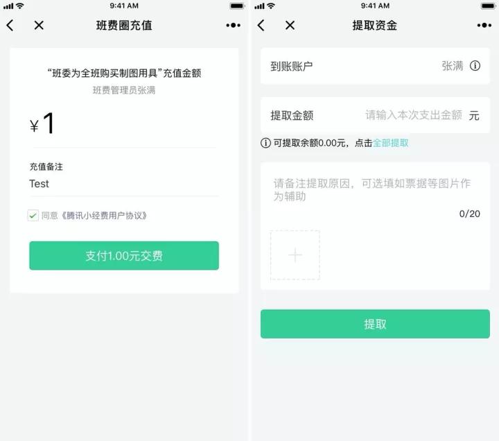 所有的资金操作都通过微信支付来完成,点击「充值」可以为你的圈子进行资金充值。提取资金会提取到你的微信零钱账户。