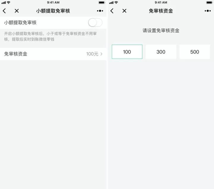 需要说明的是,在开启「小额提取免审核」和设置免审核金额时,需要输入你的微信支付密码来确定是你本人的操作。