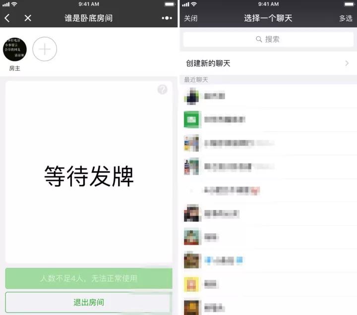 「趣桌游」小程序完美的解决了这个问题,你可以直接点击「谁是卧底」就可以进入游戏等待房间,通过点击「+」来邀请你的微信好友。