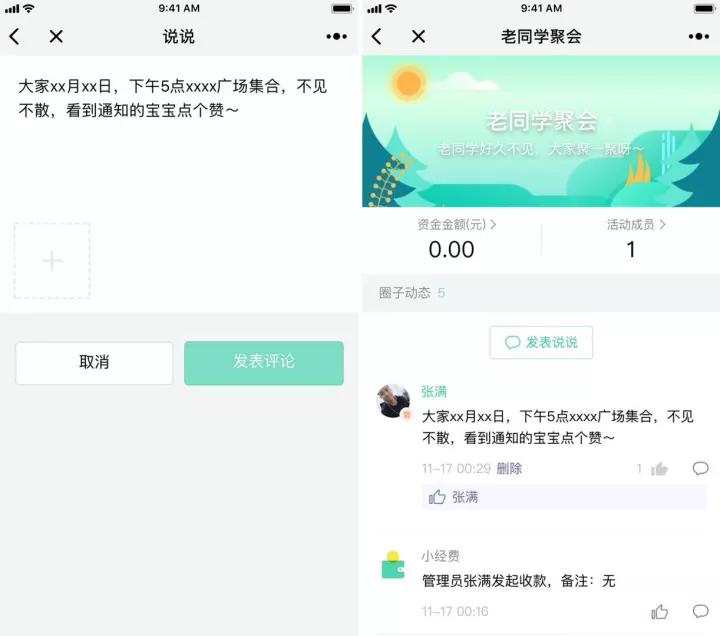 有了这款「腾讯小经费」小程序,在聚会之前,组织者就可以收到每个参加聚会的人需要花费的钱,这样完全消除了花费巨额经费的烦恼。以后想组织聚会,就组织聚会,随心所欲!