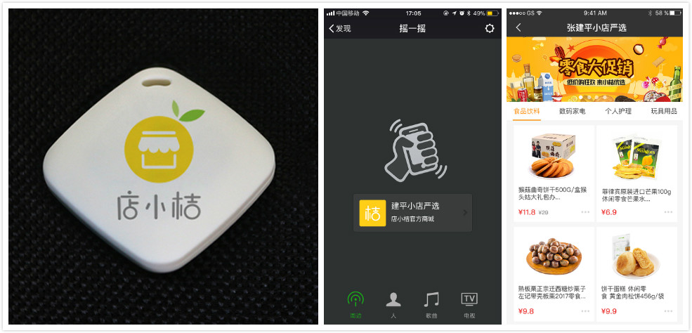 店小桔具体模式是为夫妻店提供一套SaaS系统和小型接收器。消费者进店以后使用微信摇一摇,接收器就会收到信息,并在摇一摇界面推荐店小桔运营的电商(电商会以夫妻店命名)。电商里有当地经销商的促销打折商品和小店SKU之外的产品,店内没有的实物,会在下单第二天发货给消费者或由消费者到店自提。电商平台上成交的商品,纯利润的60%会给到小店。