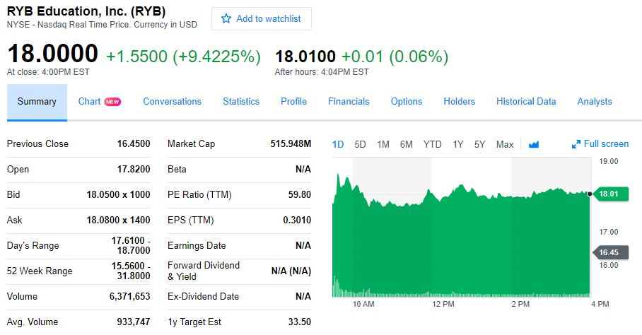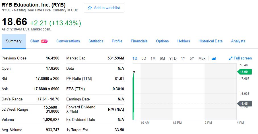 周一收涨9.42%,报18美元,离发行价仅有2.7%的差距,盘后微涨0.06%。
