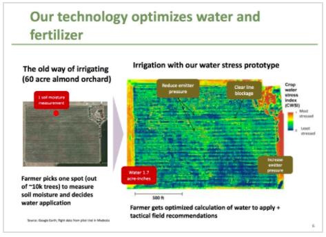 他们的独特价值定位不是飞机或者相机,而是精确监控水和农药的专门算法。精彩的想法。