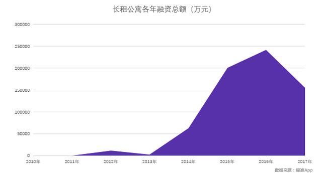 从融资额来看,从2012年至2016年,长租公寓领域所投资的资本逐年增加,截止目前,资本所投金额达67.5亿元。