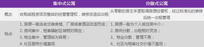 由于公寓运营商自身的起始点和优劣势不同,在房源获取上存在一定差异,因此,根据房源在地理空间上的分布,可以将长租公寓分为集中式公寓和分散式公寓两种。此外,公寓运营商根据不同租客的定位,赋予房间不同的装修风格以及相关服务特色,在租客终端的产品上有略微的差异。