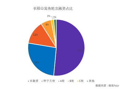 根据鲸准收录的数据,目前国内长租公寓企业超过170家,超过半数项目发生融资事件,天使及以前融资占比27%,A轮与B轮项目融资占比分别为13.9%、6.56%。