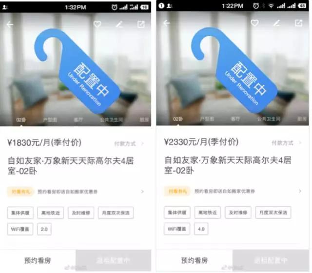 自如CEO熊林在11月27日的公告里称,“自如全北京所有在租房源,12月31日前不涨一分钱”,一位微博网友告诉《风眼》,他最近正在考虑租住自如,关注的一个房间上周六(11月25日)还显示为1830元,而第二天(11月26日)就变成了2330元,涨价500元,《风眼》在自如APP上查询该房源,目前价格依然是2330元。