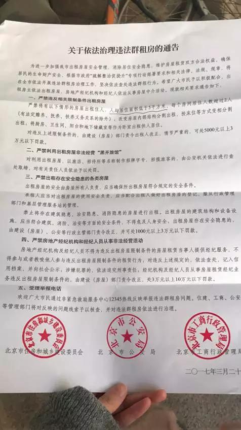 但整治隔断间的行动一直没有停止过,朝阳区某社区的出租房办公室负责人杨大爷告诉《风眼》,今年3月20日,北京市住房和城乡建设委员会、北京市公安局、北京市工商管理局联合发布了《关于依法治理违法群租房的通告》。