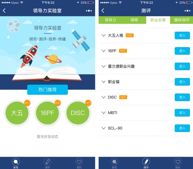 打开首页「发现」页面,三个热门测试展现在眼前。
