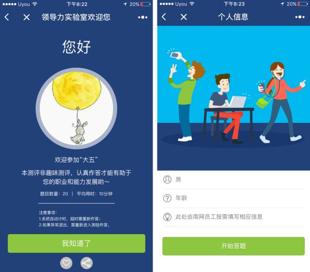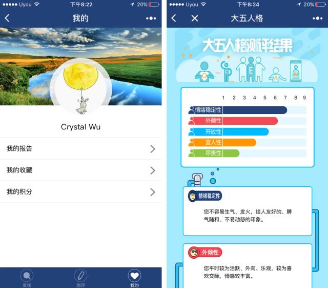 从情绪稳定性,外倾性,开放性,宜人性和尽责性五方面来做测评的「大五人格」测评。