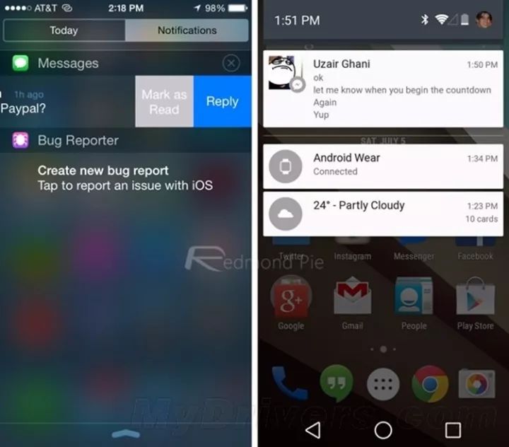 比如安卓系统是有一个和 iOS 差不多的统一消息推送服务器,但由于缺少谷歌服务框架,各 App 开发商只能自己推送消息,导致 App 需要常驻后台,这就是为什么大家觉得安卓机没苹果机流畅的主要原因之一(当然也可以嘲讽苹果机是假后台机制)。