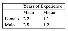 下表列出了男女求职者工作年限的平均数和中位数,值得注意的是职位要求并不包含工作年限。